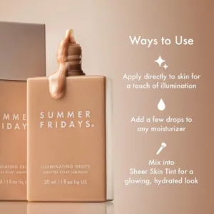 Luminosidad natural en cada gota.Las Illuminating Drops de Summer Fridays aportan un brillo radiante y saludable que realza la piel al instante. Su fórmula ligera se integra perfectamente, permitiendo usarlo solo, como iluminador en puntos altos o mezclado con tu…